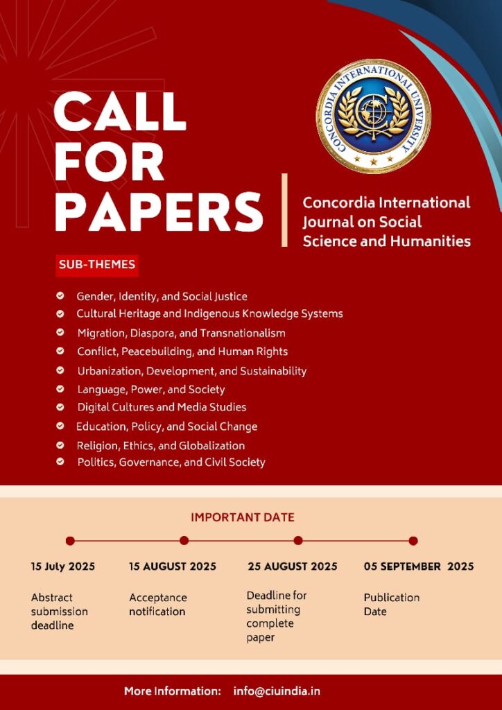 Thank you for your interest in submitting to Concordia International Journal on Social Science and Humanities. Please review the following guidelines carefully to ensure your manuscript meets our requirements.